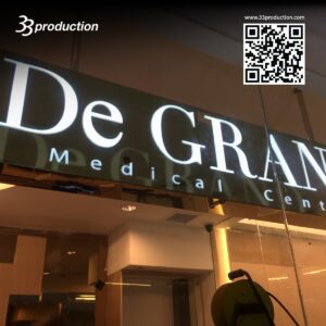 ป้ายอักษรไฟ LED ตัวอักษรสามมิติ ติดตั้งไฟ LED ภายใน ให้แสงสว่างคมชัด มองเห็นเด่นชัดจากระยะไกล เหมาะสำหรับคลินิกและอาคารธุรกิจ ช่วยเสริมภาพลักษณ์ที่ดูสะอาด ทันสมัย และน่าเชื่อถือ